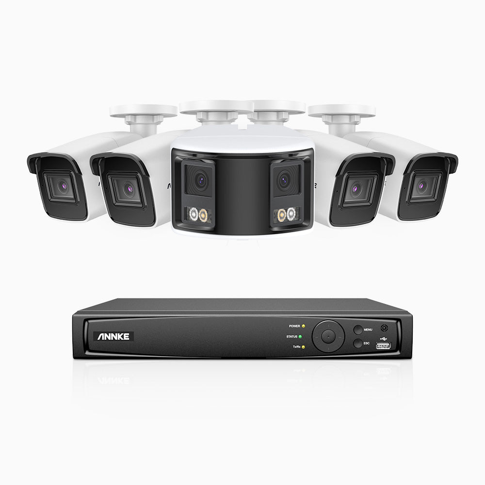 HDCK680 - 8 Kanal PoE Überwachungskamera-Set mit 4*4K Kameras & 1*6MP zwei Objektiven Kamera (180° Ultraweitwinkel), Personen-und Fahrzeugerkennung, Eingebautes Mikrophon