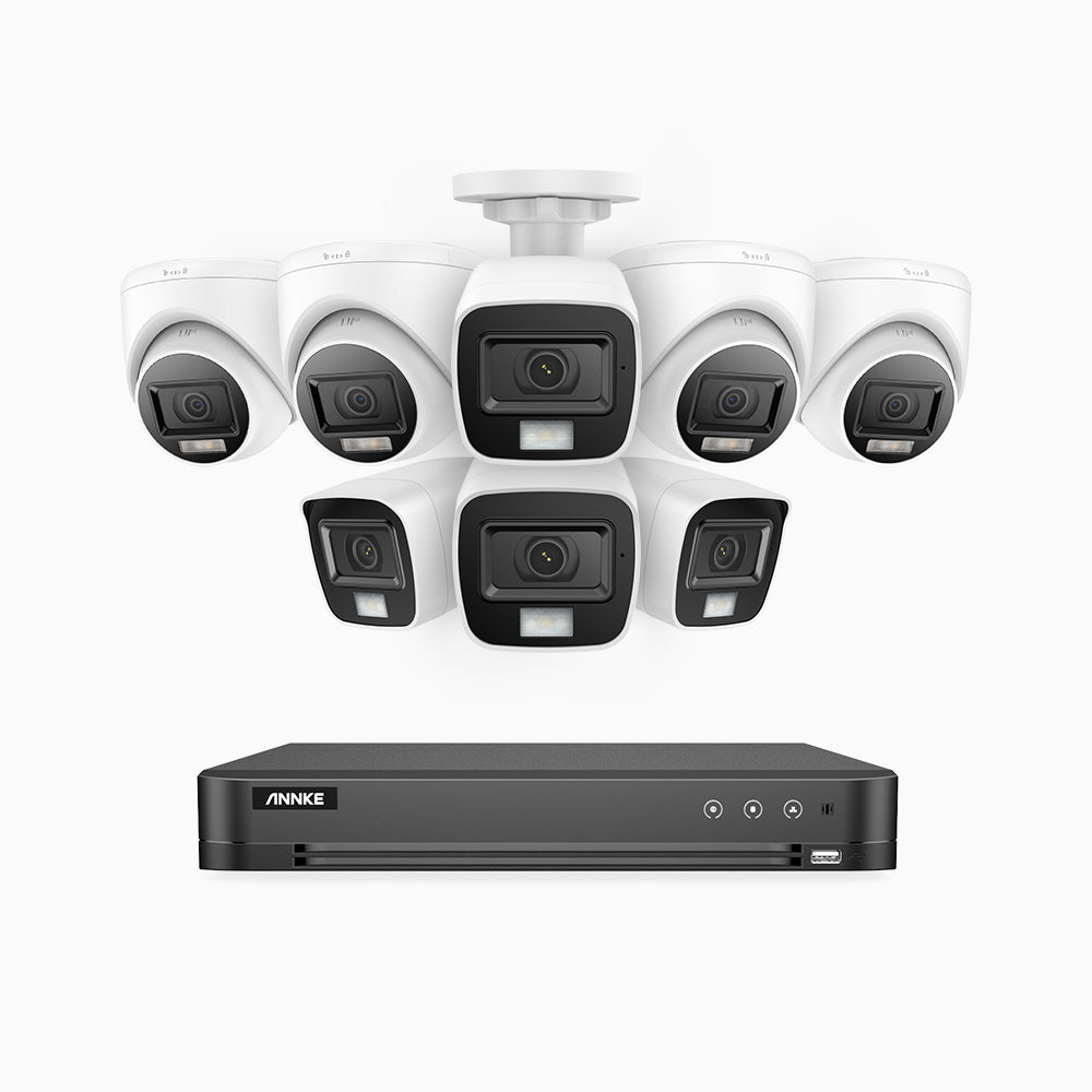 ADLK800 -4K 16 Kanal außen Kabelgebunden Überwachungskamera-Set mit 4 Bullet Kameras & 4 Turm Kameras, Zwei Lichtern Nachtsicht, 3840x2160@20fps, f/1.6 Superblende, 4-in-1 Ausgangssignal, IP67