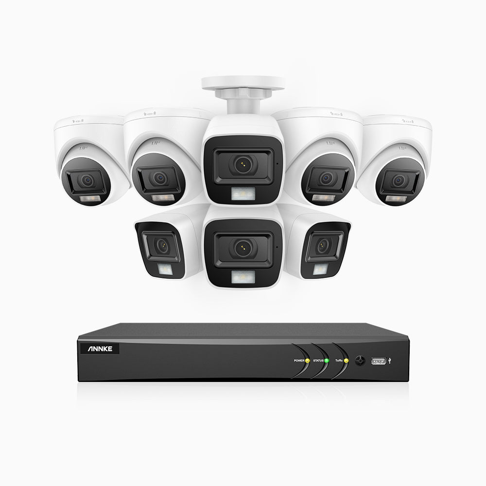 ADLK800 -4K 8 Kanal außen Kabelgebunden Überwachungskamera-Set mit 4 Bullet Kameras & 4 Turm Kameras, Zwei Lichtern Nachtsicht, 3840x2160@20fps, f/1.6 Superblende, 4-in-1 Ausgangssignal, IP67