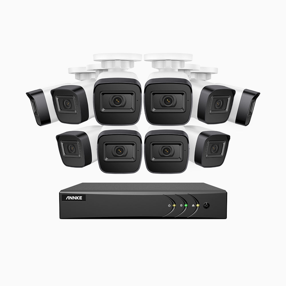 EL200 - 1080p 16 Kanal außen Kabelgebunden Überwachungskamera-Set mit 10 Kameras, intelligenter DVR mit Erkennung von Menschen & Fahrzeugen, 20 Meter Infrarot-Nachtsicht, 4-in-1-Ausgangssignal, IP67