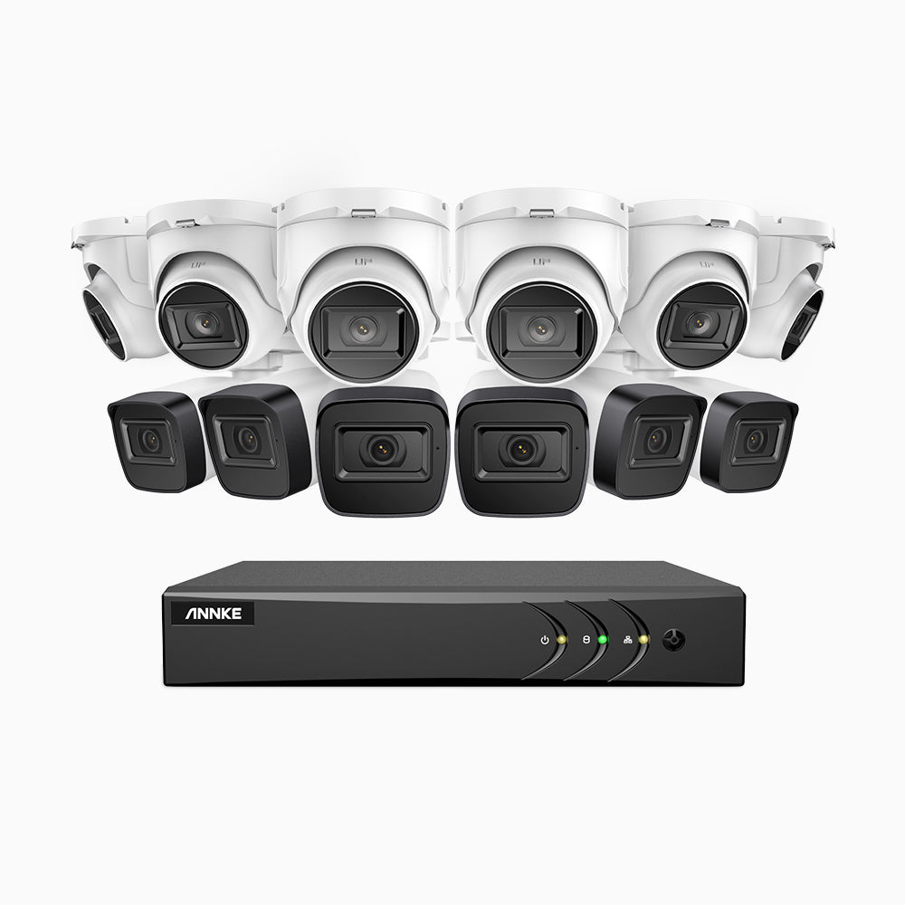 EL200 - 1080p 16 Kanal außen Kabelgebunden Überwachungskamera-Set mit 6 Bullet Kameras & 6 Turm Kameras, intelligenter DVR mit Erkennung von Menschen & Fahrzeugen, 20 Meter Infrarot-Nachtsicht, 4-in-1-Ausgangssignal, IP67