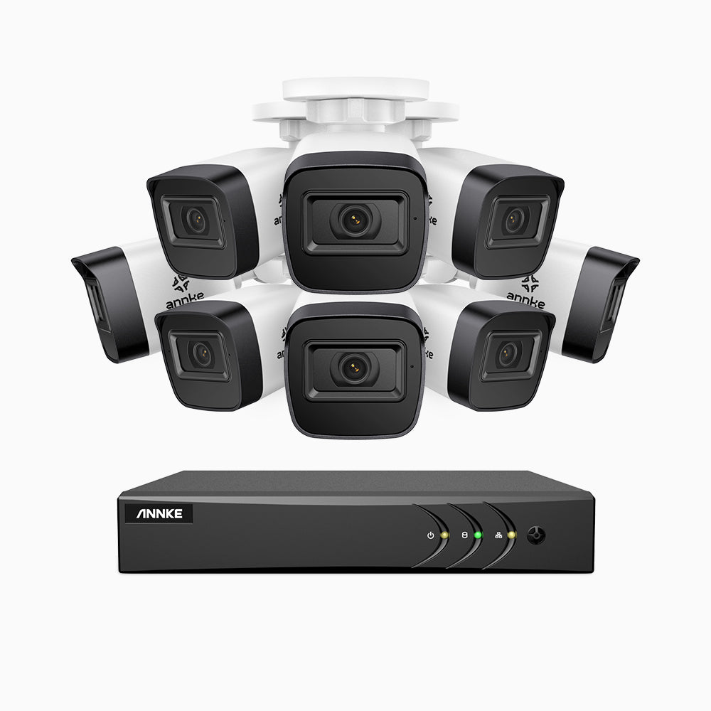 EL200 - 1080p 16 Kanal außen Kabelgebunden Überwachungskamera-Set mit 8 Kameras, intelligenter DVR mit Erkennung von Menschen & Fahrzeugen, 20 Meter Infrarot-Nachtsicht, 4-in-1-Ausgangssignal, IP67