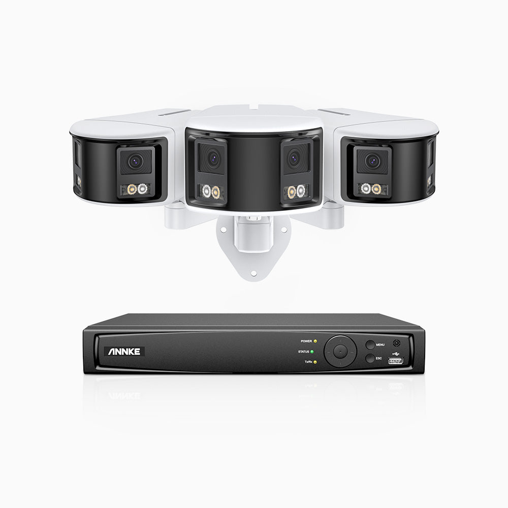 FDH600 - 6MP 8 Kanal PoE Panorama Überwachungskamera-Set mit 3 Kameras, zwei Objektiven, 180° Ultraweitwinkel, f/1.2 Superblende, BSI-Sensor, integriertes Mikrofon, aktive Sirene und Alarm, Personen-und Fahrzeugerkennung