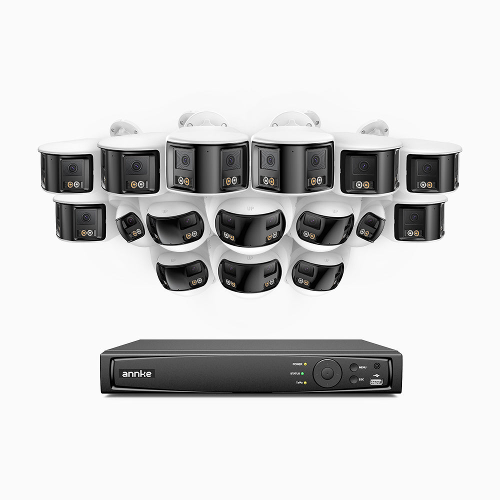 FDH800 - 4K 16 Kanal PoE Panorama Überwachungskamera-Set mit 8 Bullet Kameras & 8 Turm Kameras, zwei Objektiven, 180° Ultraweitwinkel, intelligenter Dual-Licht-Nachtsicht, Zwei-Wege-Audio, aktivem Sirenenton & Alarm, Personen- & Fahrzeugerkennung, IP67
