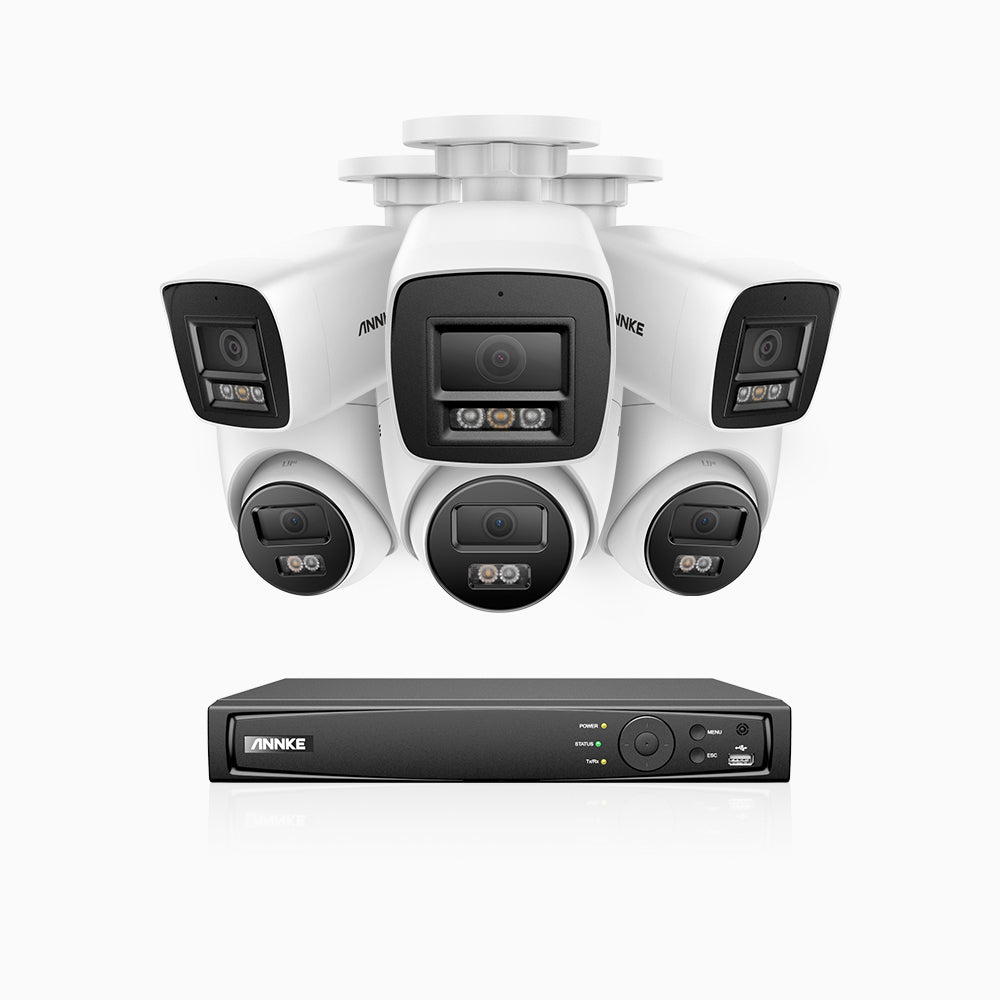 H1200 - 4K 12MP 8 Kanal PoE Überwachungskamera-Set mit 3 Bullet Kameras & 3 Turm Kameras, Farbe & IR Nachtsicht, Erkennung von Menschen & Fahrzeugen, H.265+, Eingebautes Mikrofon, Max. 512 GB lokaler Speicher, IP67