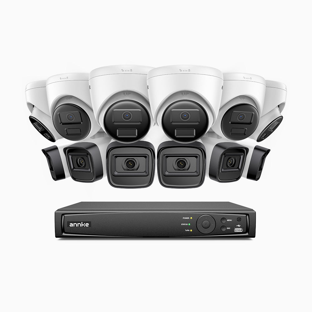 H300 - 3MP 16 Kanal PoE Überwachungskamera-Set mit 6 Bullet Kameras & 6 Turm Kameras, EXIR 2.0 Nachtsicht, Bewegungserkennung, H.265+, IP67 Wetterfest