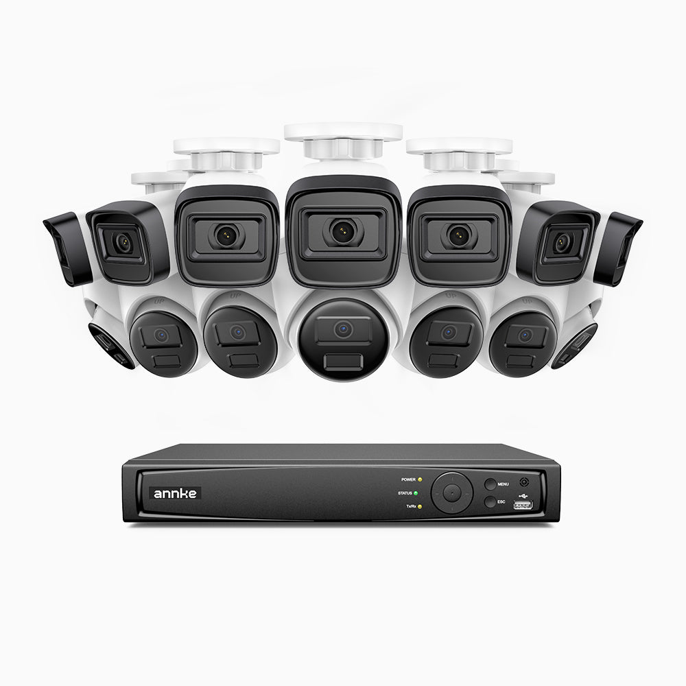 H300 - 3MP 16 Kanal PoE Überwachungskamera-Set mit 7 Bullet Kameras & 7 Turm Kameras, EXIR 2.0 Nachtsicht, Bewegungserkennung, H.265+, IP67 Wetterfest