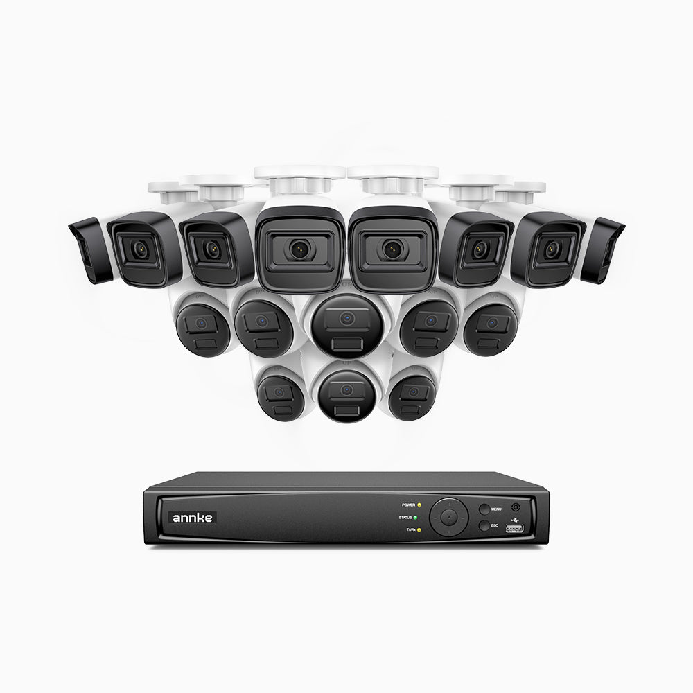 H300 - 3MP 16 Kanal PoE Überwachungskamera-Set mit 8 Bullet Kameras & 8 Turm Kameras, EXIR 2.0 Nachtsicht, Bewegungserkennung, H.265+, IP67 Wetterfest