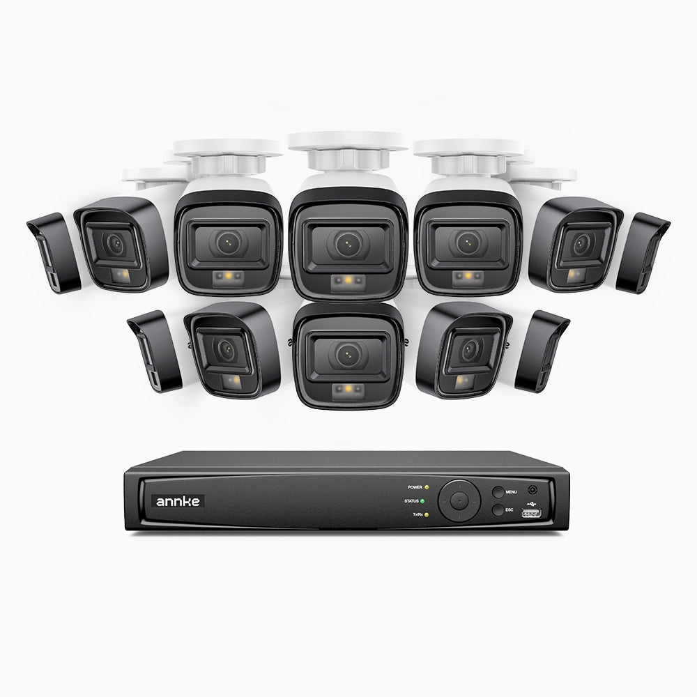 H500 - 3K 16 Kanal PoE Überwachungskamera-Set mit 12 Kameras, Intelligente Dual-Licht-Nachtsicht, 3072 × 1728 @ 20fps, intelligente Erkennung von Personen und Fahrzeugen, integriertes Mikrofon, IP67