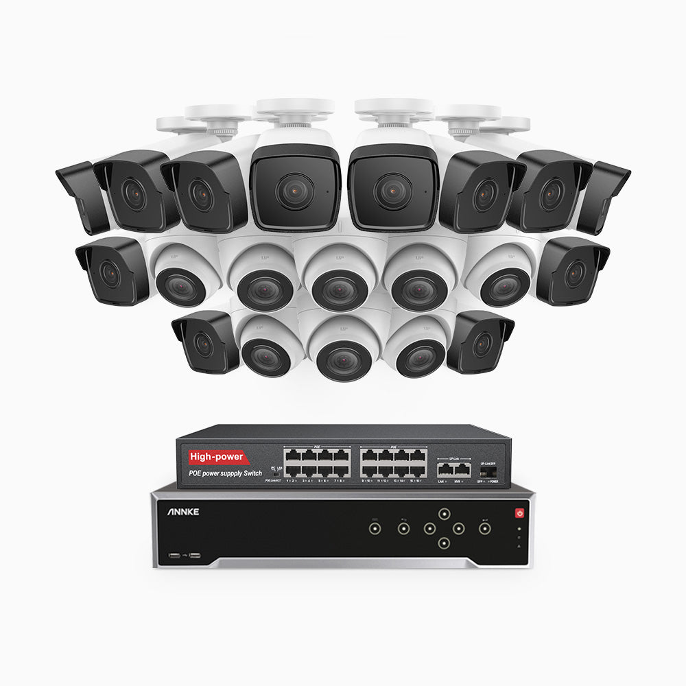 H500 - 3K 32 Kanal PoE Überwachungskamera-Set mit 12 Bullet Kameras & 8 Turm Kameras, Eingebautes Mikrofon & SD-Kartensteckplatz, funktioniert mit Alexa, Inklusive 16-Port-PoE-Switch, EXIR Nachtsicht 2.0, IP67