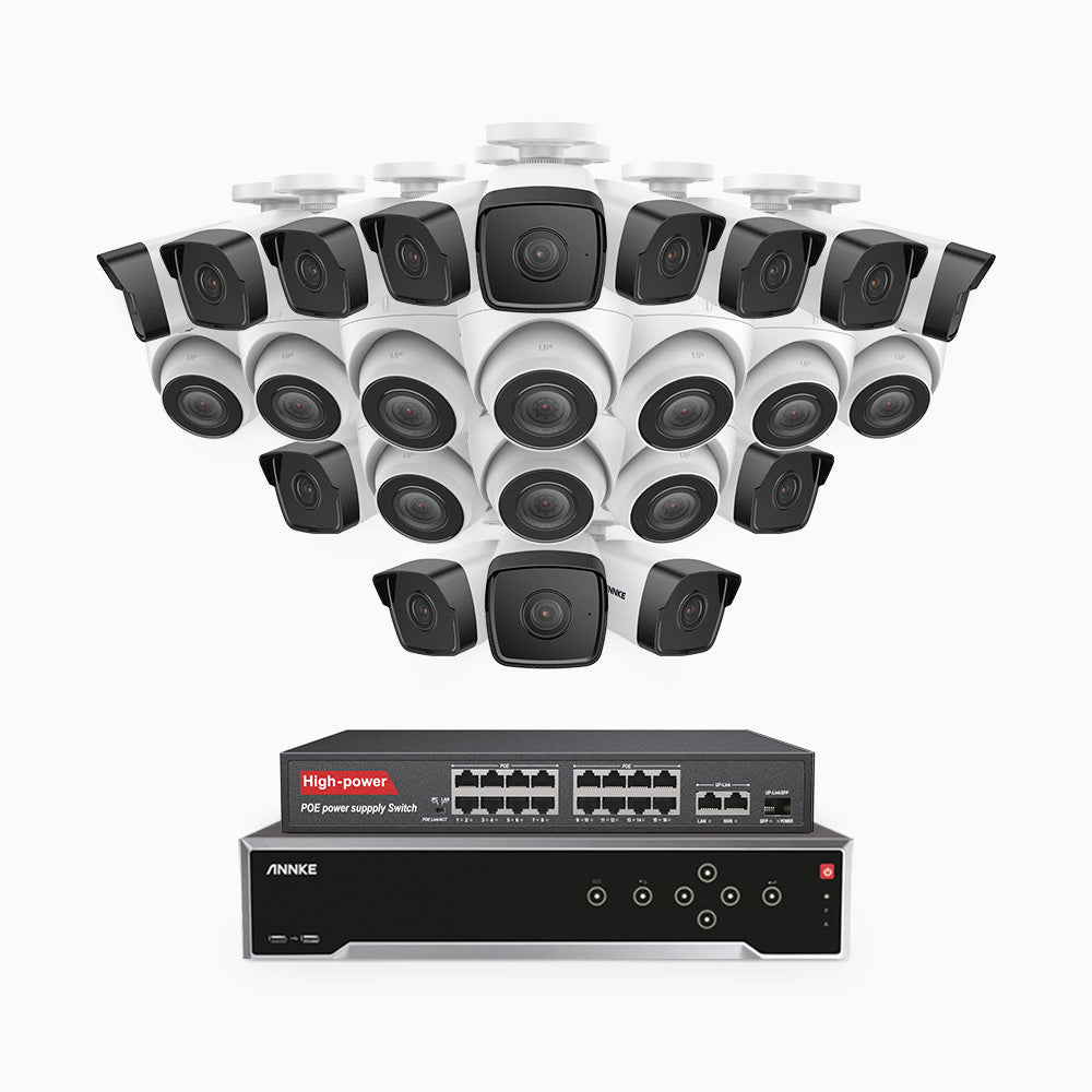 H500 - 3K 32 Kanal PoE Überwachungskamera-Set mit 14 Bullet Kameras & 10 Turm Kameras, Eingebautes Mikrofon & SD-Kartensteckplatz, funktioniert mit Alexa, Inklusive 16-Port-PoE-Switch, EXIR Nachtsicht 2.0, IP67