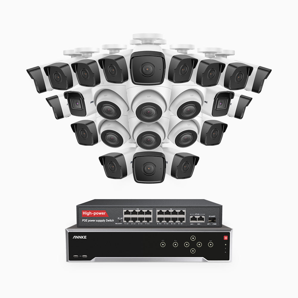 H500 - 3K 32 Kanal PoE Überwachungskamera-Set mit 18 Bullet Kameras & 6 Turm Kameras, Eingebautes Mikrofon & SD-Kartensteckplatz, funktioniert mit Alexa, Inklusive 16-Port-PoE-Switch, EXIR Nachtsicht 2.0, IP67