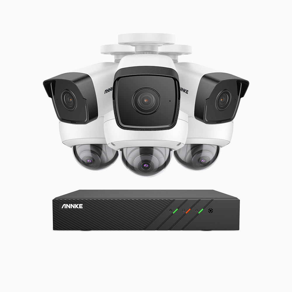 H500 - 3K 8 Kanal PoE Überwachungskamera-Set mit 3 Bullet Kameras & 3 Dome Kameras, EXIR Nachtsicht 2.0, Eingebautes Mikrofon, Unterstützt RTSP und ONVIF, funktioniert mit Alexa, IP67