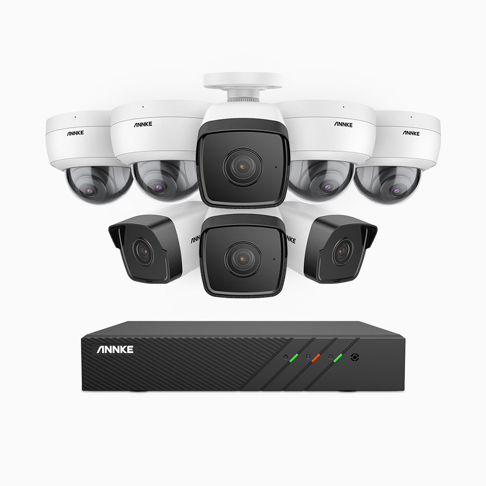 H500 - 3K 8 Kanal PoE Überwachungskamera-Set mit 4 Bullet Kameras & 4 Dome Kameras, EXIR Nachtsicht 2.0, Eingebautes Mikrofon, Unterstützt RTSP und ONVIF, funktioniert mit Alexa, IP67