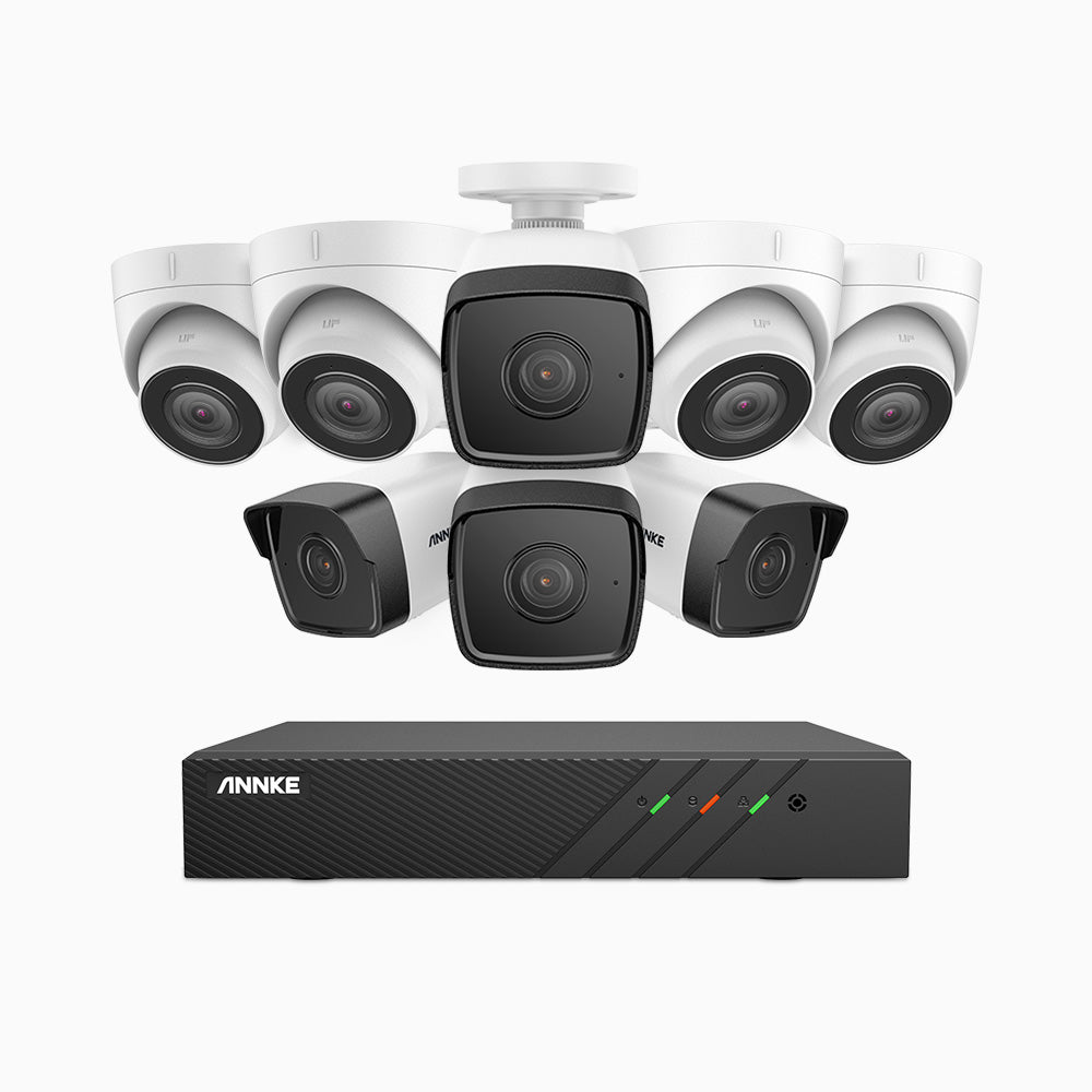 H500 - 3K 8 Kanal PoE Überwachungskamera-Set mit 4 Bullet Kameras & 4 Turm Kameras, EXIR Nachtsicht 2.0, Eingebautes Mikrofon, Unterstützt RTSP und ONVIF, funktioniert mit Alexa, IP67