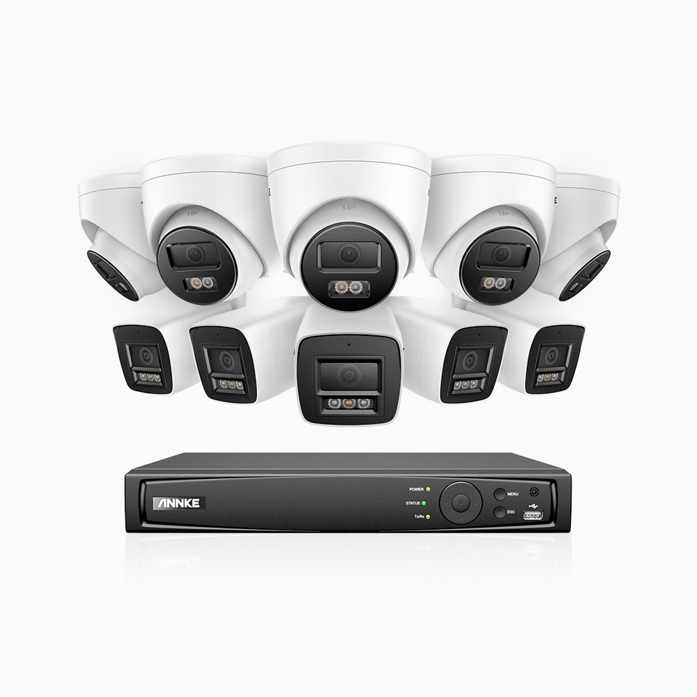 H800 - 4K 16 Kanal PoE Überwachungskamera-Set mit 5 Bullet Kameras & 5 Turm Kameras, Farbe & IR Nachtsicht, Personen- und Fahrzeugerkennung, Eingebautes Mikrofon, 96° Sichtfeld, Unterstützt RTSP