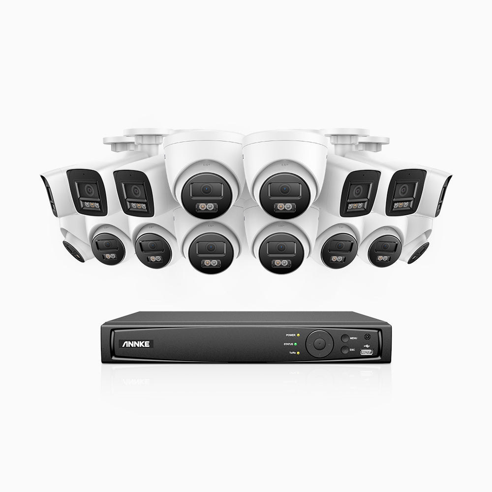 H800 - 4K 16 Kanal PoE Überwachungskamera-Set mit 6 Bullet Kameras & 10 Turm Kameras, Farbe & IR Nachtsicht, Personen- und Fahrzeugerkennung, Eingebautes Mikrofon, 96° Sichtfeld, Unterstützt RTSP