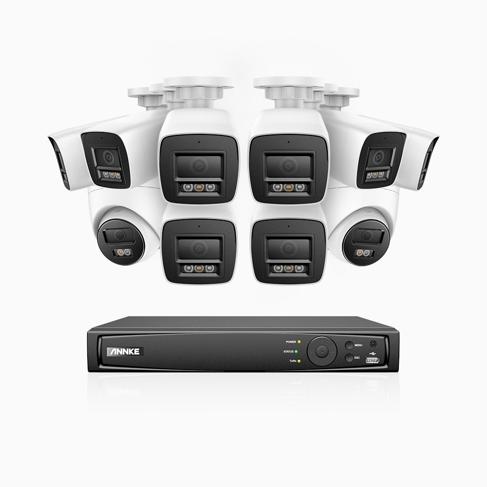 H800 - 4K 16 Kanal PoE Überwachungskamera-Set mit 8 Bullet Kameras & 2 Turm Kameras, Farbe & IR Nachtsicht, Personen- und Fahrzeugerkennung, Eingebautes Mikrofon, 96° Sichtfeld, Unterstützt RTSP