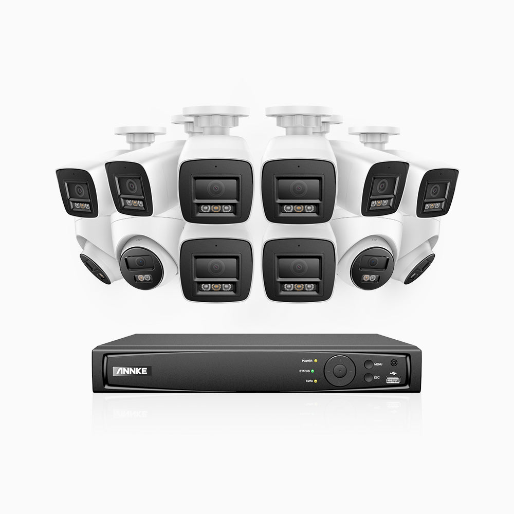 H800 - 4K 16 Kanal PoE Überwachungskamera-Set mit 8 Bullet Kameras & 4 Turm Kameras, Farbe & IR Nachtsicht, Personen- und Fahrzeugerkennung, Eingebautes Mikrofon, 96° Sichtfeld, Unterstützt RTSP