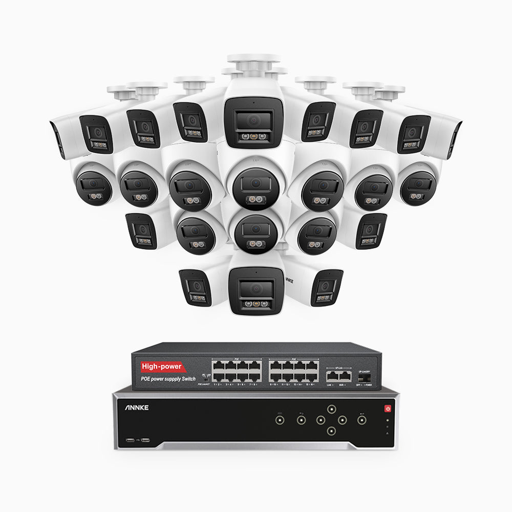 H800 - 4K 32 Kanal PoE Überwachungskamera-Set mit 14 Bullet Kameras & 10 Turm Kameras, Farbe & IR Nachtsicht, Personen- und Fahrzeugerkennung, Eingebautes Mikrofon, 96° Sichtfeld, Unterstützt RTSP, Inklusive 16-Port-PoE-Switch