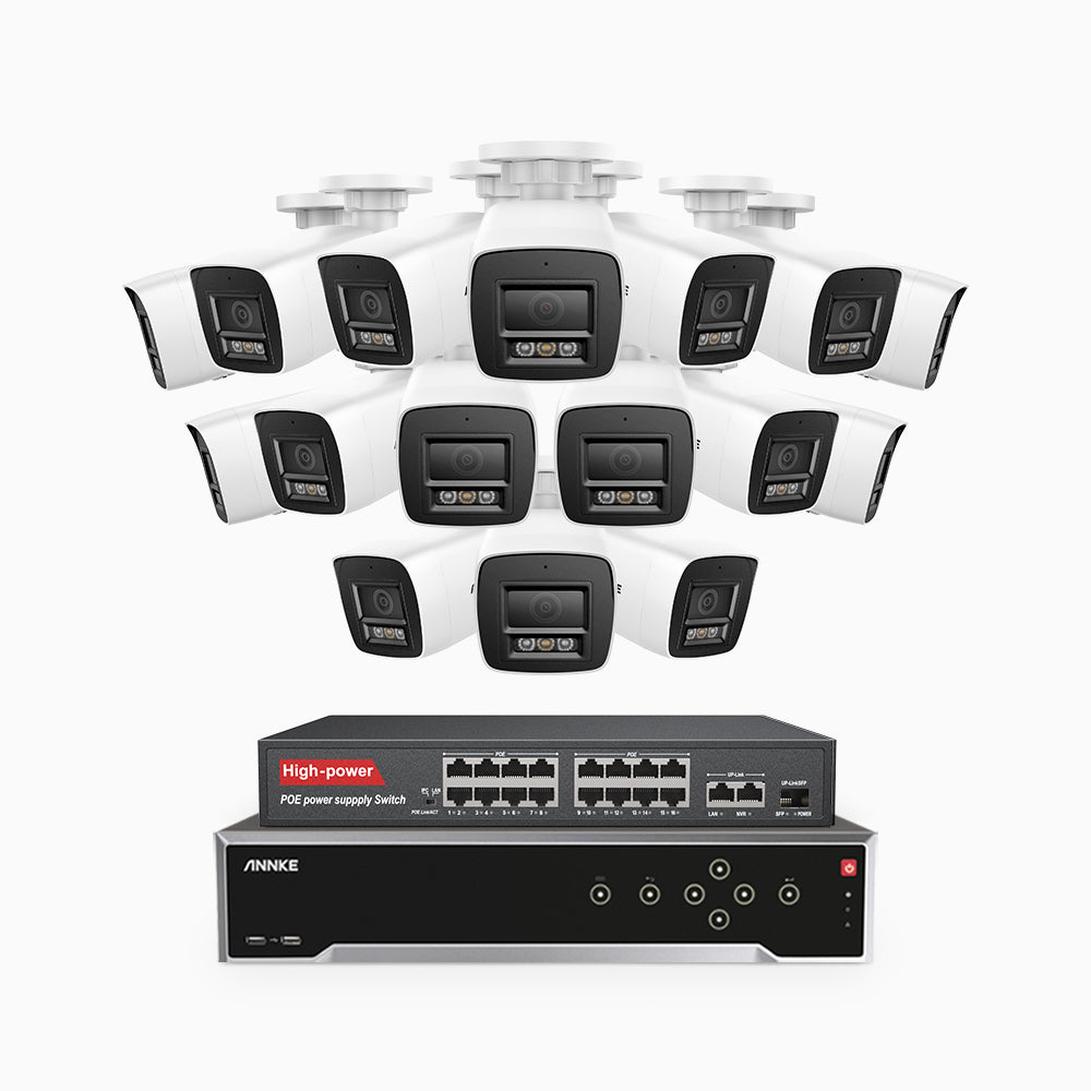 H800 - 4K 32 Kanal PoE Überwachungskamera-Set mit 16 Kameras, Farbe & IR Nachtsicht, Personen- und Fahrzeugerkennung, 96° Sichtfeld, Eingebautes Mikrofon, Unterstützt RTSP, Inklusive 16-Port-PoE-Switch