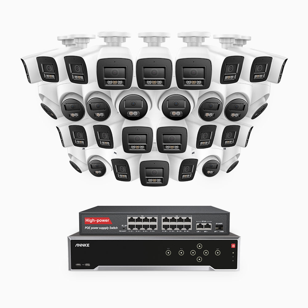 H800 - 4K 32 Kanal PoE Überwachungskamera-Set mit 20 Bullet Kameras & 12 Turm Kameras, Farbe & IR Nachtsicht, Personen- und Fahrzeugerkennung, Eingebautes Mikrofon, 96° Sichtfeld, Unterstützt RTSP, Inklusive 16-Port-PoE-Switch