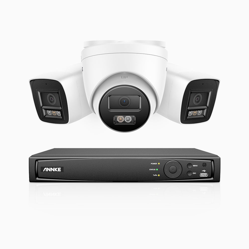 H800 - 4K 4 Kanal PoE Überwachungskamera-Set mit 2 Bullet Kameras & 1 Turm Kamera, Farbe & IR Nachtsicht, Personen- und Fahrzeugerkennung, Eingebautes Mikrofon, 96° Sichtfeld, Unterstützt RTSP