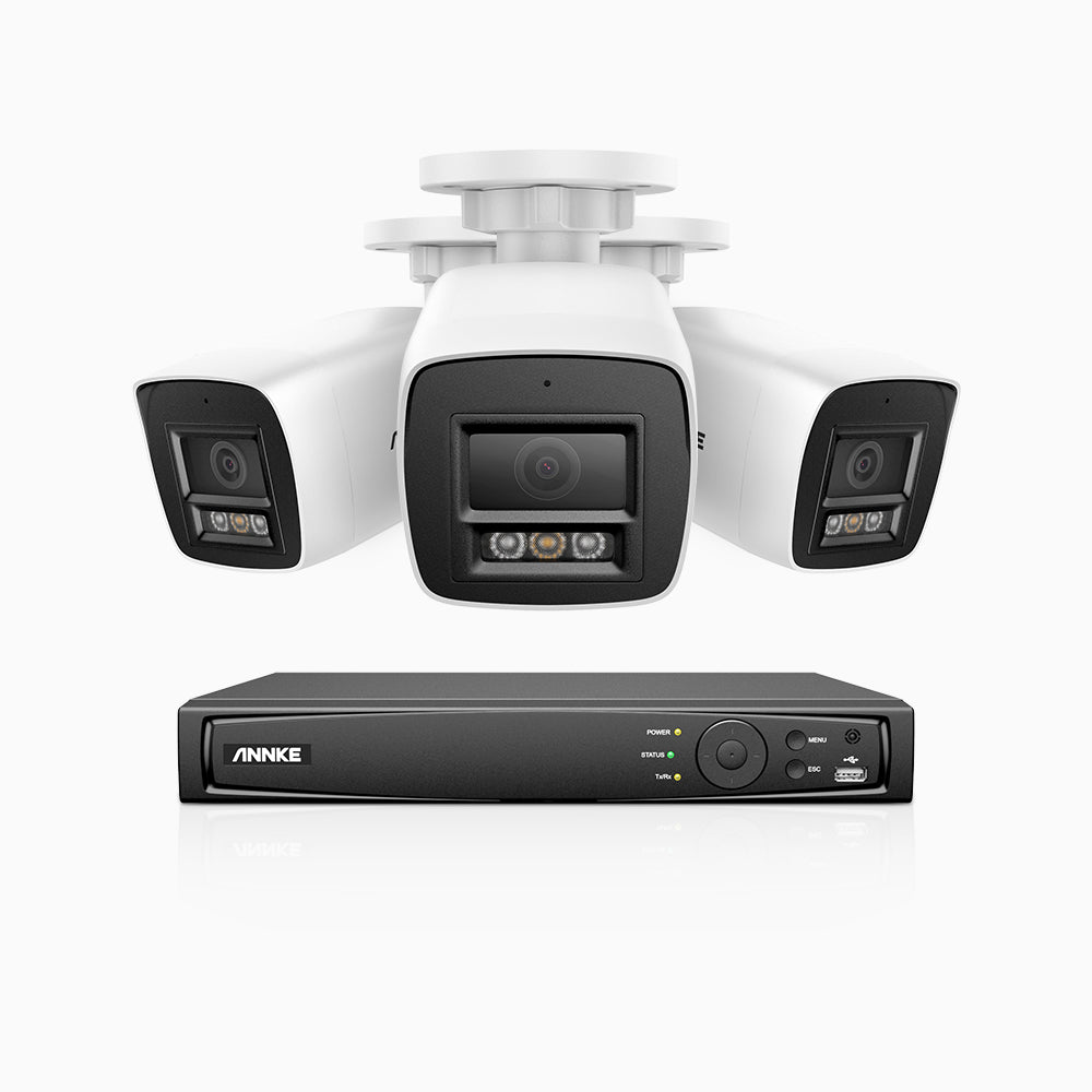 H800 - 4K 4 Kanal PoE Überwachungskamera-Set mit 3 Kameras, Farbe & IR Nachtsicht, Personen- und Fahrzeugerkennung, 96° Sichtfeld, Eingebautes Mikrofon, Unterstützt RTSP