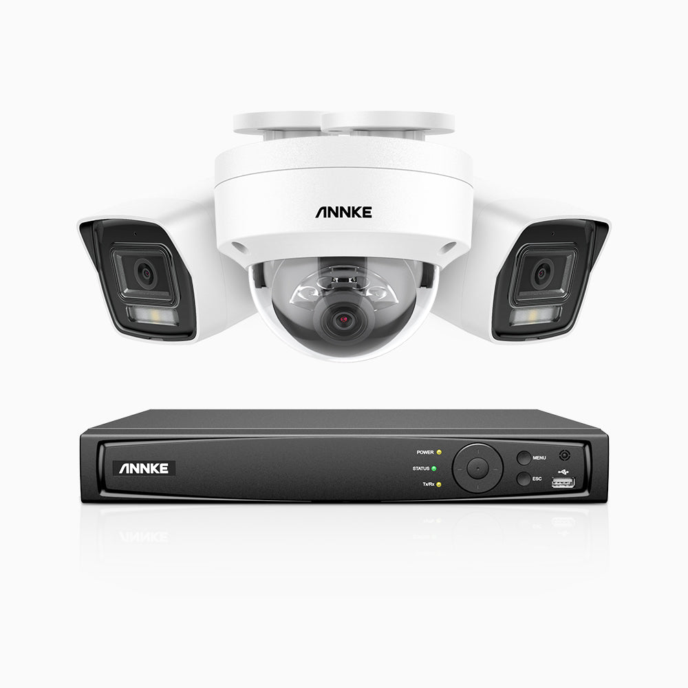 H800 - 4K 4 Kanal PoE Überwachungskamera-Set mit 2 Bullet Kameras & 1 Dome (IK10) Kamera, Vandalensichere, Farbe & IR Nachtsicht, Personen- und Fahrzeugerkennung, Eingebautes Mikrofon, 96° Sichtfeld, Unterstützt RTSP