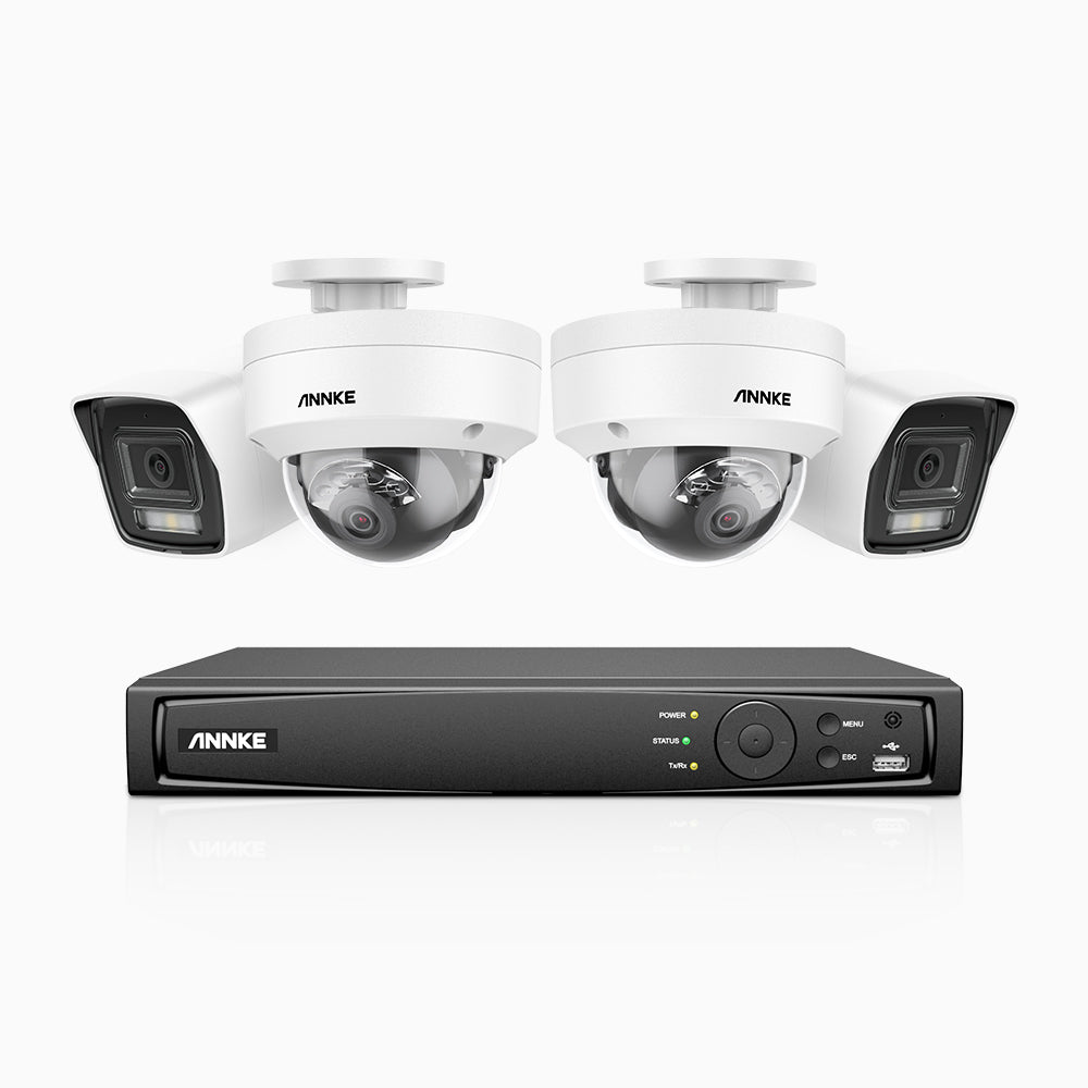H800 - 4K 4 Kanal PoE Überwachungskamera-Set mit 2 Bullet Kameras & 2 Dome (IK10) Kameras, Vandalensichere, Farbe & IR Nachtsicht, Personen- und Fahrzeugerkennung, Eingebautes Mikrofon, 96° Sichtfeld, Unterstützt RTSP