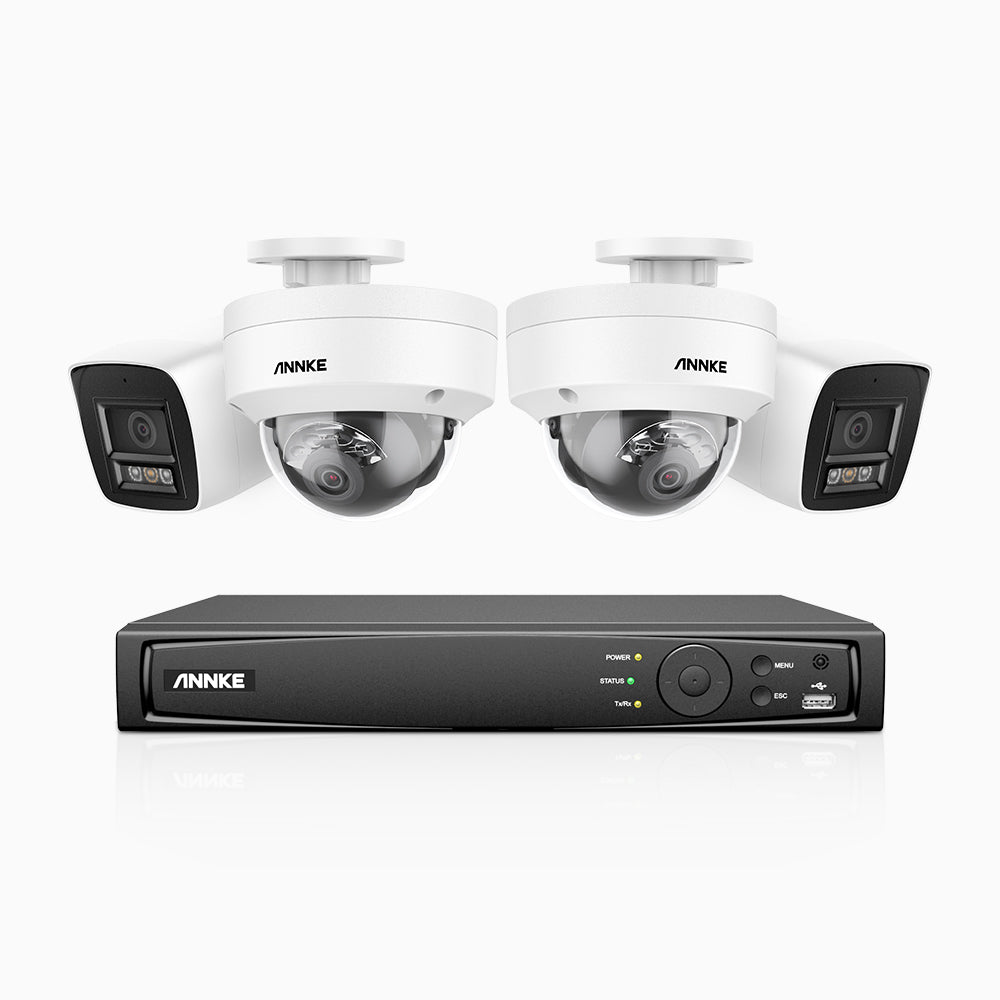 H800 - 4K 8 Kanal PoE Überwachungskamera-Set mit 2 Bullet Kameras & 2 Dome (IK10) Kameras, Vandalensichere, Farbe & IR Nachtsicht, Personen- und Fahrzeugerkennung, Eingebautes Mikrofon, 96° Sichtfeld, Unterstützt RTSP