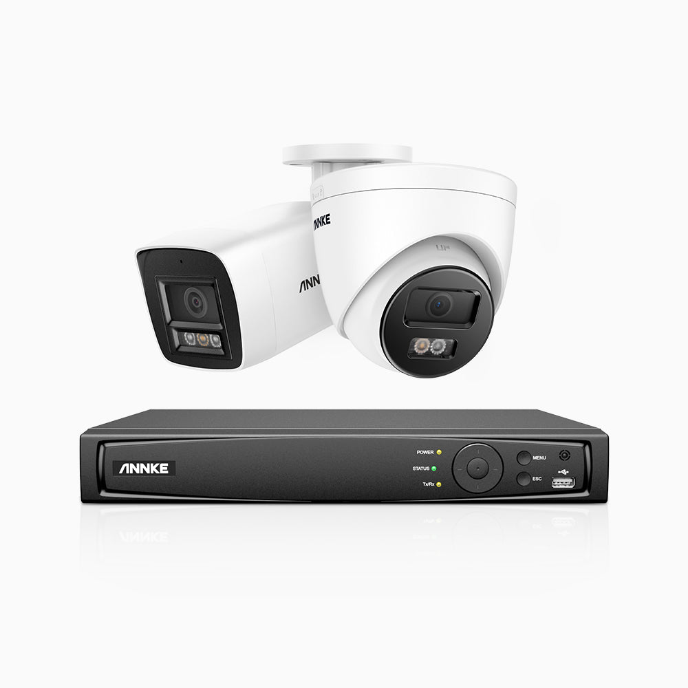 H800 - 4K 8 Kanal PoE Überwachungskamera-Set mit 1 Bullet Kamera & 1 Turm Kamera, Farbe & IR Nachtsicht, Personen- und Fahrzeugerkennung, Eingebautes Mikrofon, 96° Sichtfeld, Unterstützt RTSP
