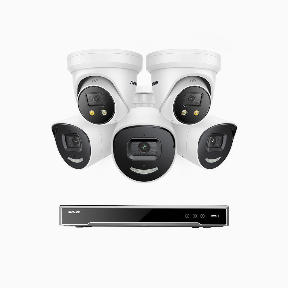 H800X - 4K 8 Kanal PoE Überwachungskamera-Set mit 3 Bullet Kameras & 2 Turm Kameras, 1/1.8'' BSI Sensor, f/1.6 Aperture (0.003 Lux), alarmierung mit sirene und blitzlicht, 2CH 4K-Dekodierungsfunktion, personen- und fahrzeugerkennung, perimeterschutz