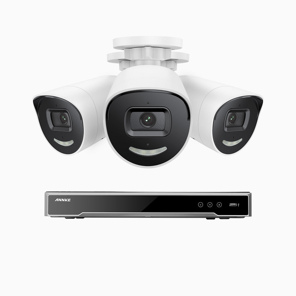 H800X - 4K 8 Kanal PoE Überwachungskamera-Set mit 3 Kameras, 1/1.8'' BSI Sensor, f/1.6 Aperture (0.003 Lux), alarmierung mit sirene und blitzlicht, 2CH 4K-Dekodierungsfunktion, personen- und fahrzeugerkennung, perimeterschutz