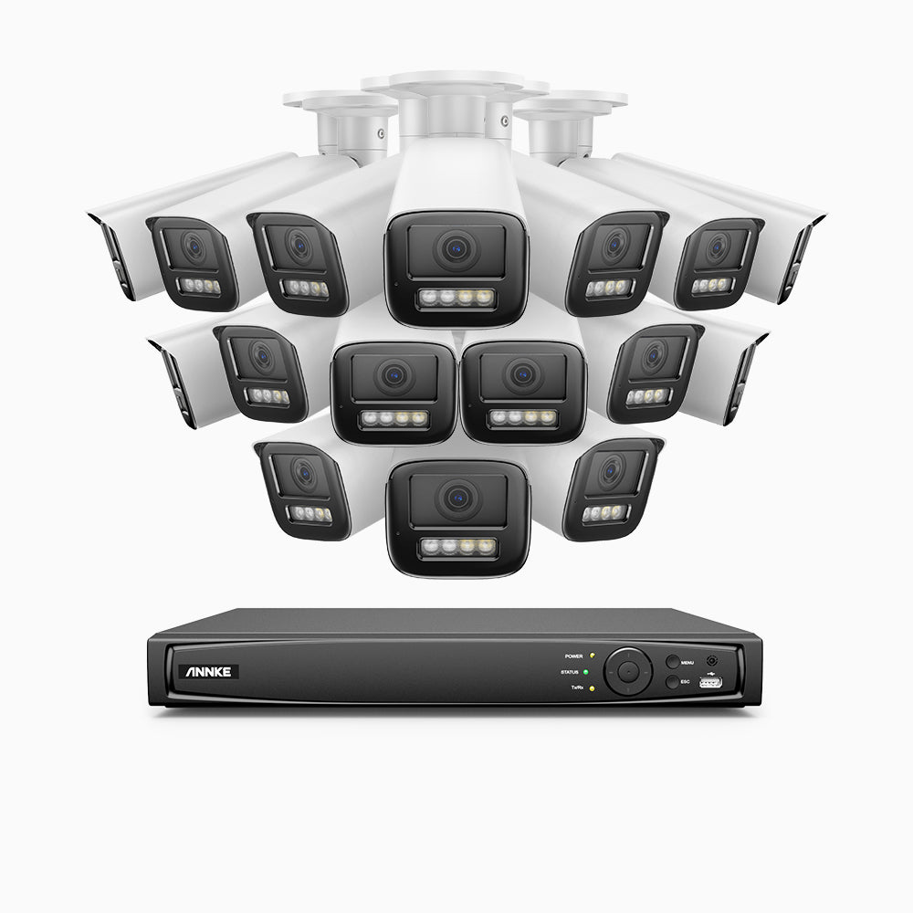 HZ804 - 4K 16 Kanal PoE Dome Überwachungskamera-Set mit 16 Kameras, 4X Optischer Zoom, 2,8-12 MM motorisiertes Varifokalobjektiv, Intelligente Zwei Lichtern Nachtsicht, Bewegungserkennung 2.0, Eingebautes Mikrophon, Alarmierung mit sirene und blitzlicht