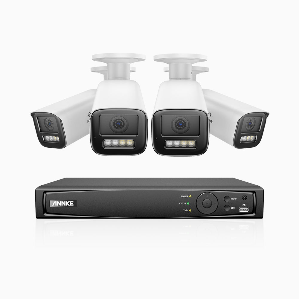 HZ804 - 4K 4 Kanal PoE Dome Überwachungskamera-Set mit 4 Kameras, 4X Optischer Zoom, 2,8-12 MM motorisiertes Varifokalobjektiv, Intelligente Zwei Lichtern Nachtsicht, Bewegungserkennung 2.0, Eingebautes Mikrophon, Alarmierung mit sirene und blitzlicht