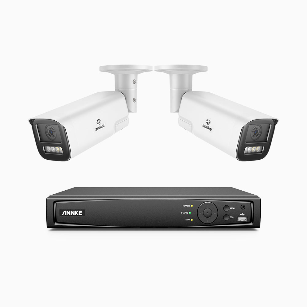 HZ804 - 4K 8 Kanal PoE Dome Überwachungskamera-Set mit 2 Kameras, 4X Optischer Zoom, 2,8-12 MM motorisiertes Varifokalobjektiv, Intelligente Zwei Lichtern Nachtsicht, Bewegungserkennung 2.0, Eingebautes Mikrophon, Alarmierung mit sirene und blitzlicht