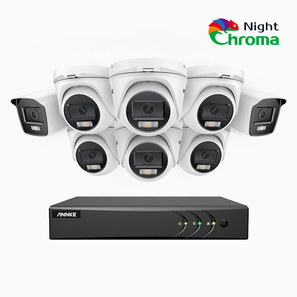 NightChromaTM NAK200 - 1080P 8 Kanal Kabelgebunden Überwachungskamera-Set mit 2 Bullet Kameras & 6 Turm Kameras, Acme Farbnachtsicht, F/1.0 Superblende, 0,0005 Lx, Aktive Ausrichtung