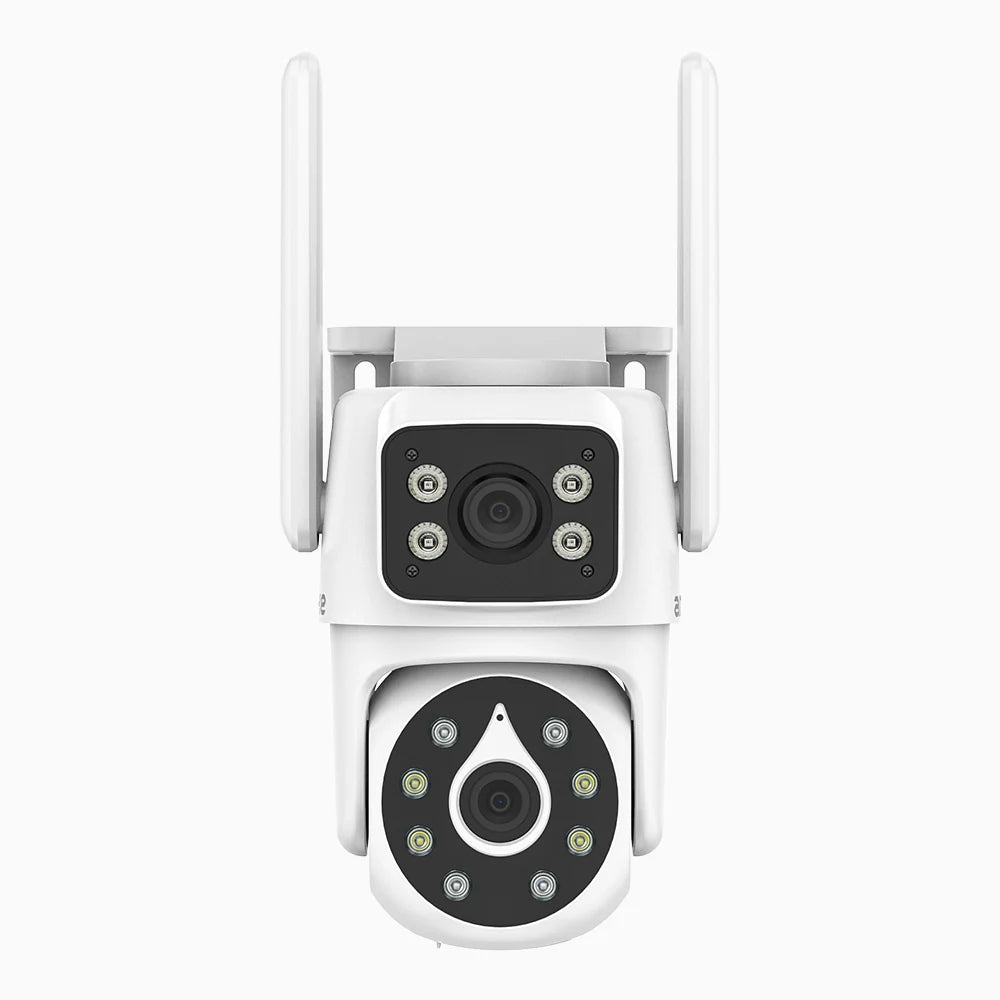 Ausgestattet mit professionellen 4MP-Objektiven erfasst die WLAN-Kamera jedes Detail in gestochen scharfer 1920×2160-Auflösung. Das Dual-Lens-Design kombiniert Weitwinkel- und Nahansichten zu einer nahtlosen, panoramischen Gesamtaufnahme. Egal ob Einfahrt, Garten, Büro oder Ladengeschäft – diese Kamera beseitigt tote Winkel und sorgt für volle Übersicht in einem einzigen Bild.