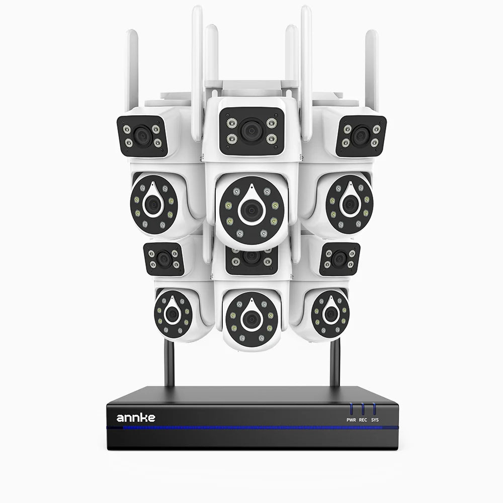 WCDS400 – 4MP 8-Kanal Funk Dual-Lens Überwachungssystem Set mit 6 Kameras, 2.4G/5G Dualband-WLAN, 350° Pan & 90° Tilt, Dual-Light Nachtsicht, Bewegungserkennung, Zwei-Wege-Audio, kompatibel mit Alexa