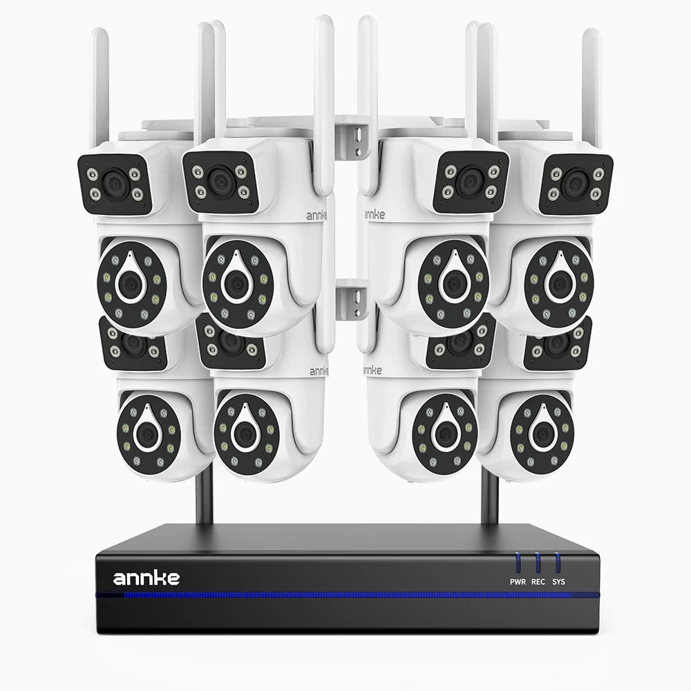 WCDS400 – 4MP 8-Kanal Funk Dual-Lens Überwachungssystem Set mit 8 Kameras, 2.4G/5G Dualband-WLAN, 350° Pan & 90° Tilt, Dual-Light Nachtsicht, Bewegungserkennung, Zwei-Wege-Audio, kompatibel mit Alexa